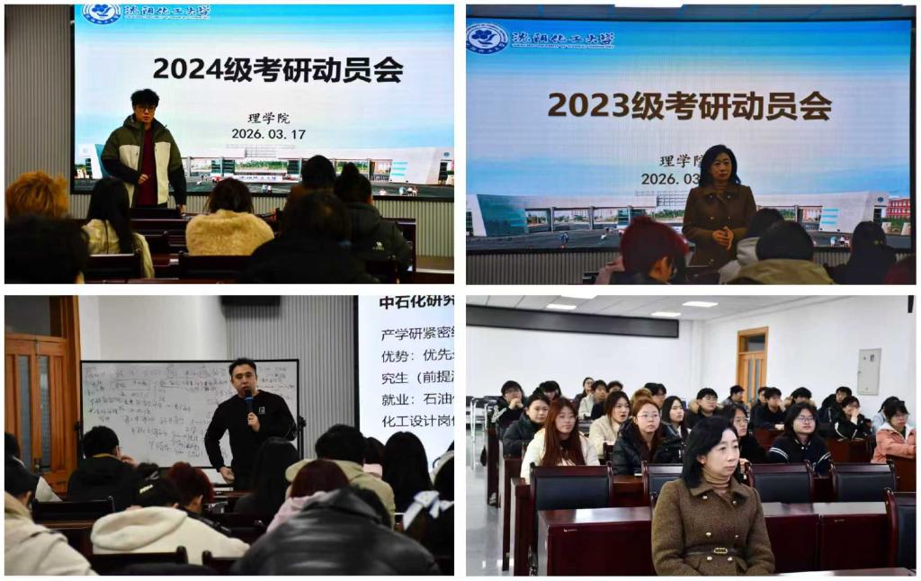 为进一步引导学生科学研判当前的就业与升学形势,理性规划个人未来的职业发展方向,3月17日,理学院在致本楼D座会议室召开了考研动员大会。会议由理学院分团委书记张卓夫主持,党委副书记高天骄,2023级研究生辅导员孙旭,2023级及2024级全体本科生参加。