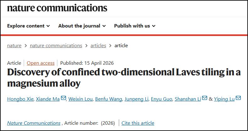近日,我校战略材料与构件研究院在镁合金微结构解析研究方面取得重要进展,相关成果以“Discovery of confined two-dimensional Laves tiling in a magnesium alloy”为题发表在《Nature Communications》。研究团队在镁合金中发现了一种构成各类已知Laves相的基础二维构筑单元,并结合理论计算系统揭示了其原子结构特征、形成机制与演化规律。战略材料与构件研究院青年教师李姗姗为论文共同通讯作者。