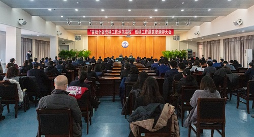 按照《中共辽宁省委教育工作委员会关于开展全省首批新时代高校党建示范创建和质量创优工作验收的通知》要求,12月23日上午,省委教育工委专职委员张迎、组织部部长刘奕彤到我校进行示范高校党委测评工作。校领导班子成员,党的工作机构负责人代表,各级党组织负责人代表,人大代表、政协委员、党代会代表、教代会代表,党内外师生代表123人参加测评大会。会议由省委教育工委专职委员张迎主持。