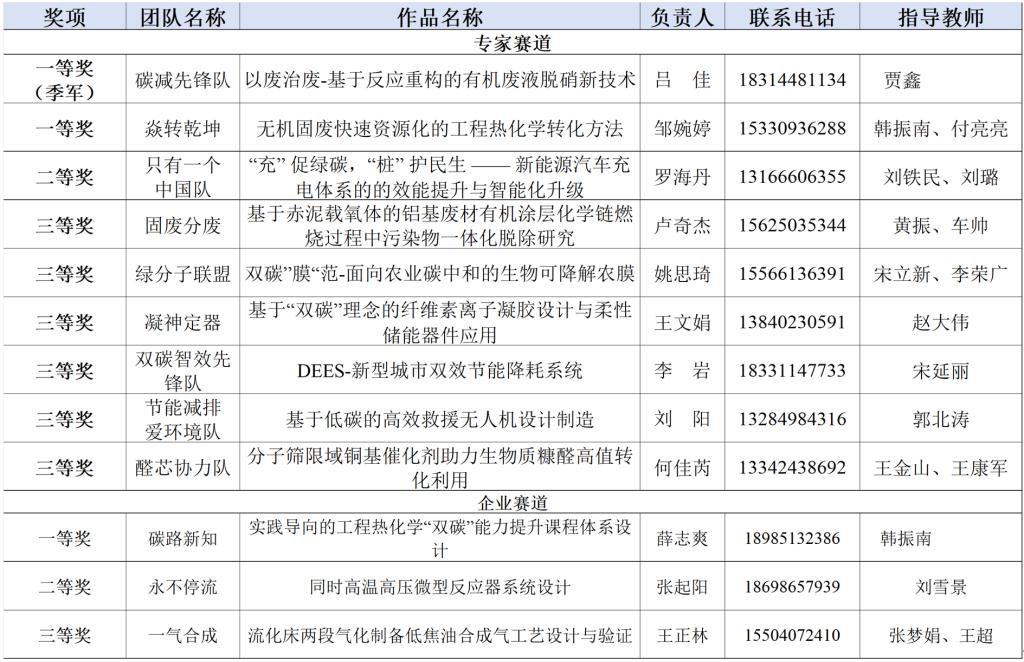 11月7日至9日,由教育部学位管理与研究生教育司指导,中国学位与研究生教育学会、中国科协青少年科技中心主办,沈阳化工大学承办、丹东百特仪器有限公司联合承办的“沈化百特杯”第四届中国研究生“双碳”创新与创意大赛全国总决赛在沈阳化工大学成功举行。沈阳化工大学参赛团队在本次大赛中表现卓越,斩获全国一等奖3项、二等奖2项、三等奖7项,其中,碳减先锋队的“以废治废-基于反应重构的有机废液脱硝新技术”作品在“双碳之星”评审总决赛中获得季军的好成绩,获奖等级和数量均创造历史最佳战绩。具体获奖名单如下: