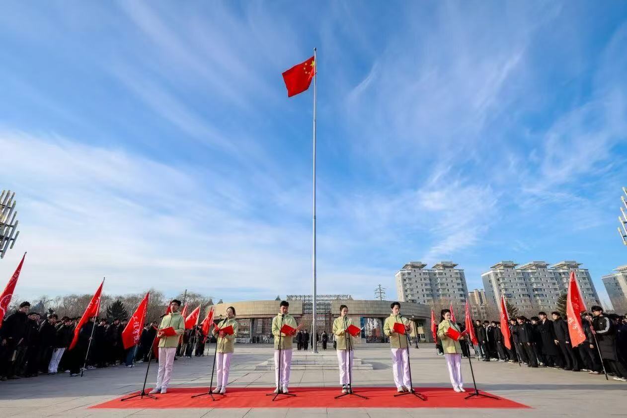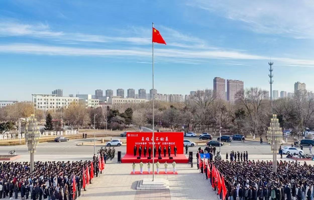 3月16日,我校在国旗广场举行“英雄永不谢幕”2026年春季“开学第一课”主题升旗仪式。校领导,党群部门负责人,二级党组织书记、副书记、全体辅导员及学生代表参加仪式。校团委书记战申主持仪式。
