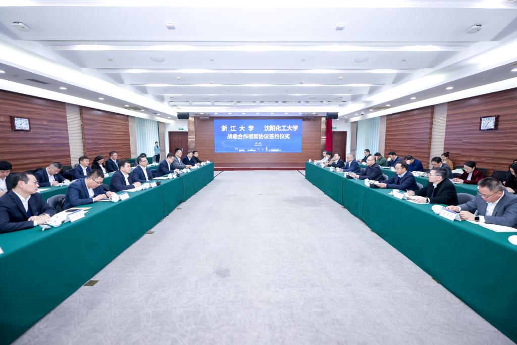 3月24日,浙江大学与沈阳化工大学战略合作框架协议签约仪式在浙江大学紫金港校区举行。浙江大学校长马琰铭院士、常务副校长王立忠、党委副书记傅强,辽宁省副省长吴春耕,省教育厅党组书记、厅长兼省委教育工委分管日常工作的副书记王庆东,学校党委书记周志强,党委副书记、副校长秦高梧,副校长王国刚、王树荣、冯质雷,两校相关部门、学院负责人参加仪式。