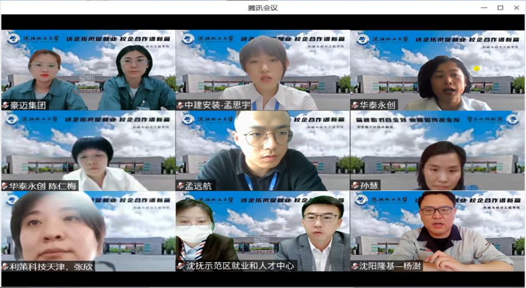 中电凯尔、沈阳隆基电磁科技股份有限公司、沈抚示范区就业和人才服务中心、长城汽车蜂巢传动、中建安装国际工程分公司、华泰永创(北京)科技股份有限公司、东管集团、利策科技(天津)有限责任公司、山东豪迈集团等多位企业代表依次发言,对企业历史、未来发展、用人需求、校企合作方式等与师生进行详细介绍和交流。学生代表在聆听企业介绍后,有针对性地向企业发问,企业代表结合企业自身特点为同学们一一解答,充分的交流帮助同学们更好地认识到专业成绩、资格证书以及综合能力在未来职业发展中的重要作用,同时许多的同学通过本次线上交流会主动与各企业联系,并在学院的帮助下达成初步意向。