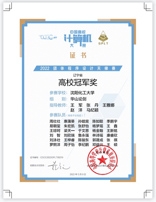 第七届“中国高校计算机大赛-团体程序设计天梯赛”总决赛于4月23日下午线下、线上同时举行,来自全国31个省级行政区的427所高校组成的1424支队伍,14180位参赛学生参加本次比赛。在学校和创新创业学院的大力支持下,我校计算机科学与技术学院选派40名同学组队参赛,由院长王军及王雅娜、张丹、赵洋、马纪颖老师担任指导教师。通过前期精心组织和刻苦训练,竞赛成绩取得历史性突破。获得辽宁省高校冠军奖和国家团队三等奖,以及国家个人三等奖1项、省一等奖1项和省三等奖1项。