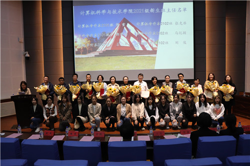 学院党总支副书记张丹宣读计算机科学与技术学院2021级新生班主任名单,王军院长、王立刚书记为新生班主任颁发了聘书,学生代表为班主任敬献鲜花并合影留念。软件工程教研室王翠青老师代表班主任发言,她为2021级新生分享了大学生活该怎么度过,寄语新生们要珍惜光阴、筑牢基础,用自己的实际行动放飞希望、实现理想,唱响美丽的青春赞歌。姜雨彤代表2021级新生发言,表示要牢记“强学力行,喻理求真”的化大校训,以接好一代代化大人手中的接力棒为义不容辞的使命,练就过硬本领,锤炼道德修养,勇担时代重任,不怕挫折、不惧挑战,努力成长为一名合格的化大人。