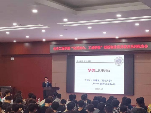 5月7日15点30分,化学工程学院优秀校友创新创业系列报告会在青年之家报告厅举办。会议邀请化学工程学院2008届优秀毕业生校友、西北大学教授张建波为我校学生做报告。学院党总支书记战君、副书记余海军、辅导员及学生代表参加会议。会议由王博老师主持。