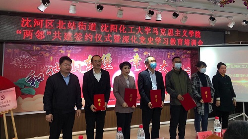 高校为地方社会经济发展提供智力支持是高校的社会责任。多年来,我校马克思主义学院一直探索“街校”(街道社区与高校)合作的模式。4月16日,马克思主义学院与沈河区北站街道共同开展“两邻”共建签约仪式。马克思主义学院领导班子及师生代表,北站街道领导班子,北站街道相关科室(中心)及各社区负责同志、社区党员代表,共100余人参加活动。