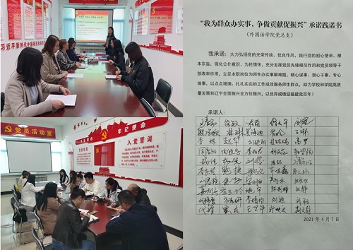 外国语学院党总支组织开展了“我为群众办实事,争做贡献促振兴”承诺践诺活动,党员们纷纷在承诺书上签上自己的名字,郑重许下承诺。通过签名活动,引导党员和领导干部立足本职岗位为师生群众办实事、办好事,让师生群众切实感受到党史学习教育带来的新变化新气象。