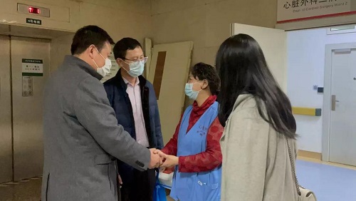 近日,王超同学从ICU转入普通病房接受康复治疗,沈阳化工大学校友总会办公室主任王成琛、化学工程学院党总支副书记余海军、王超同学辅导员老师时振芳于3月26日到医院看望王超同学,由于医院“一患一护”的疫情防控要求,未能看望到王超本人。三位老师将大连校友会10000元善款转交给王超母亲,并转达了学校和大连校友会对王超同学的美好祝福,祝福王超同学早日康复。