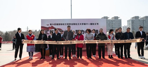 最后,莅临仪式的领导、老师、学生代表们为沈阳化工大学第十一届国际社工节开幕剪彩。