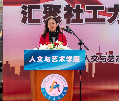 人文与艺术学院院长陈晓东代表学院致辞。她介绍了本届国际社工节的主题与目标、社会工作专业、乐和社会工作服务中心、心理健康教育中心在疫情期间建立“心理疏导+社工支持”抗疫模式,详细介绍了我校专业建设、专业人才培养取得的成效以及我校助力脱贫攻坚、助力乡村振兴等做出的贡献。陈晓东院长表示,学院将通过举办一系列多样的社会工作系列活动,让更多人关注并参与社会工作,促进社会工作专向立体化、深入化、专业化方向发展。