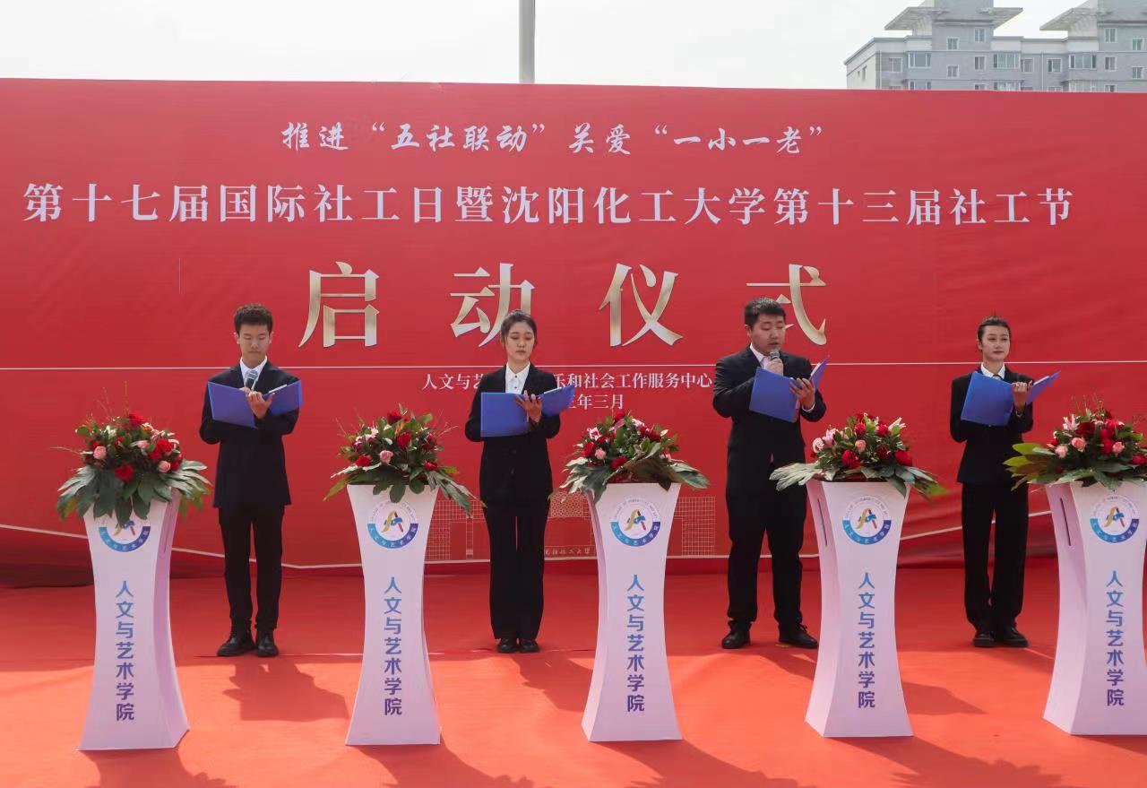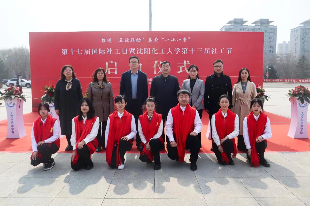 3月21日,学校在国旗广场举办第十三届国际社工节启动仪式,本次活动的主题是“推进‘五社联动’关爱‘一小一老’”。沈阳化工大学党委副书记周志强、党委宣传部部长刘飞、党委研究生工作部部长孟野、教辅党总支书记林艳新、校团委书记战申、党委学生工作部副部长王瑛玉、社会工作研究会会长陈晓东、人文与艺术学院党委书记吕政阳、副院长李漫红以及校内部分学生和社工志愿者们参加了本次活动。