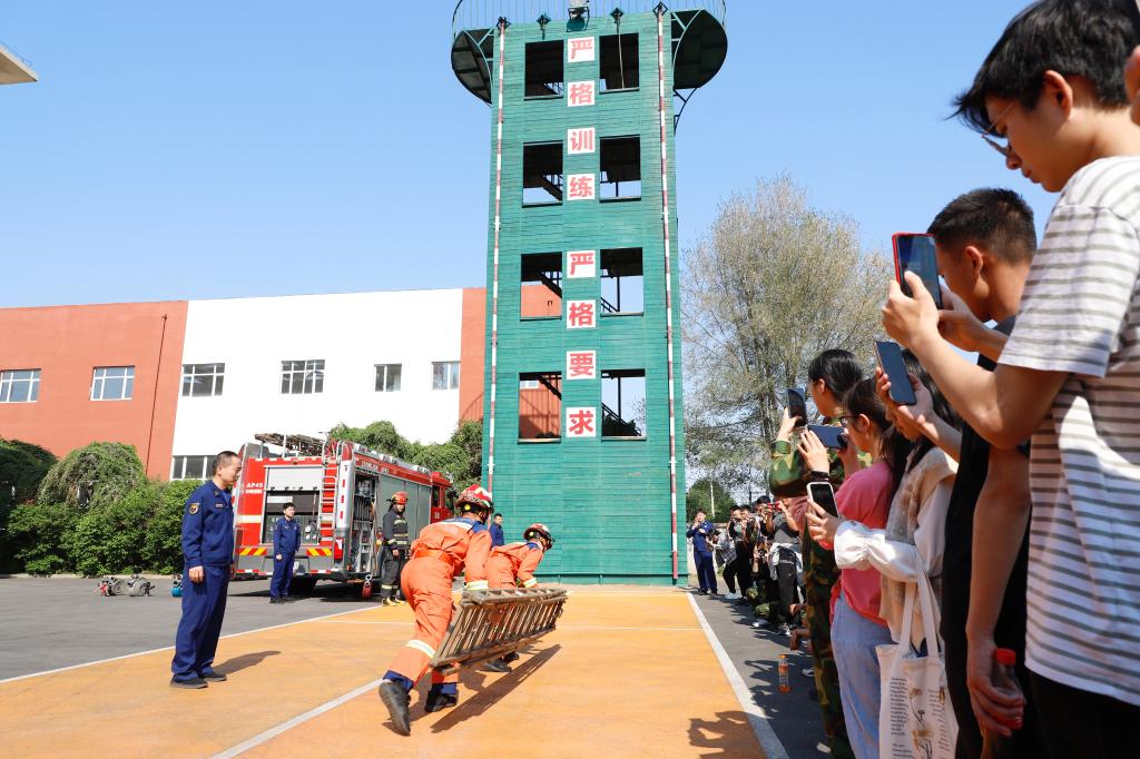 消防救援大队热情接待参观师生。学生分为两组分别参观消防救援大队的生活区域和消防救援车辆及装备,通过消防官兵的讲解,同学们了解到了消防官兵的日常生活环境,各种消防救援车辆装备的性能和作用,并学习各种消防安全知识和技能。同学们还亲自体验了消防员单兵装备和救援装备的使用,观看了消防官兵的穿戴消防装备、登高救援、快速灭火等训练科目。