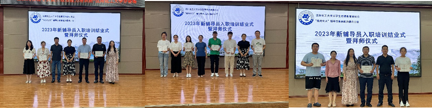 7月18日中午,沈阳化工大学2023年新辅导员入职培训第三阶段翻转课堂暨结业式在青年之家举行。2023年新入职辅导员依次上台发言,讲述工作体会,分享成长历程;“师父”为“徒弟”颁发入职培训结业证书。