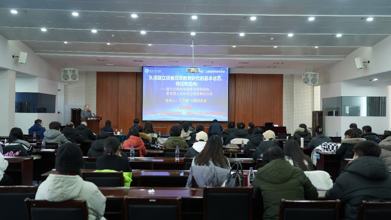 为推动学校教育科学研究广泛开展、教师教育研究能力稳步提升、教育科学规划项目深入研究,助力学校教育水平与内部治理能力稳步提高,高等教育研究所联合化大社科联立足学校“腾飞讲坛”,设立教育科学研究专场,邀请国内管理经验丰富、研究成果丰硕、评审经历丰富的知名专家学者开展系列讲座。12月26日,辽宁大学博士生导师、高等教育研究所所长王少媛研究员的首场专场讲座《我国教育科学研究资助体系与课题立项的走向与特征——基于全国教育科学规划、教育部人文社科立项情况的分析》在我校学术报告厅开讲。学校党委副书记周志强出席,副校长孙亚光会前接见了王少媛研究员并深入探讨了高教研究和业务合作等诸多问题,高等教育研究所所长梁国利主持讲座,全校师生100余人聆听了本场报告。