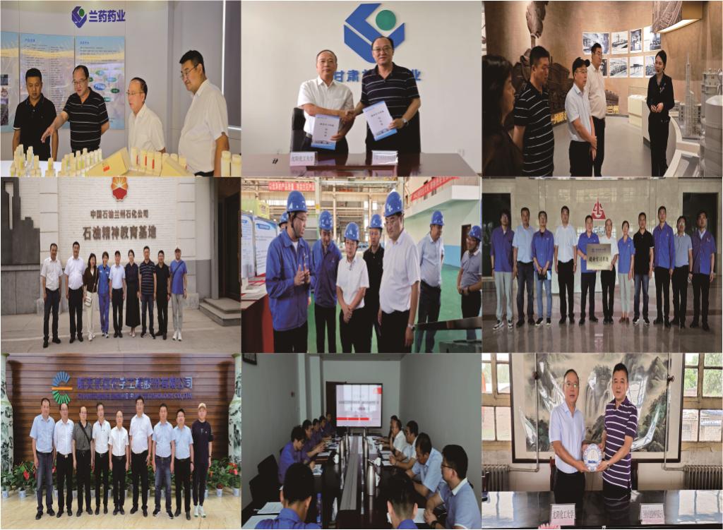 访企拓岗工作中,杨学印一行对中国石油兰州石化公司、兰州兰石集团有限公司、甘肃兰药药业有限公司、兰州永兴包装材料有限公司、航天长征化学工程股份有限公司兰州分公司等5家校友所在企业进行了走访,参观了各企业的教育基地、自动化科技展厅、智能控制生产车间、数字控制中心,智慧园区项目等。