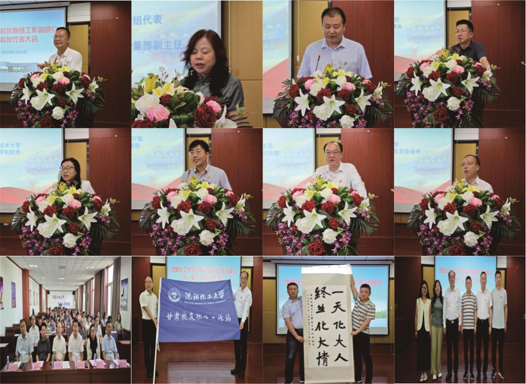甘肃校友联络工作站成立大会由材料化学09级王刚主持,有机化工88级刘嘉彤做筹备情况介绍,王成琛宣读了《关于沈阳化工大学甘肃校友联络工作站的成立批复》,大会推选会计学96级马述乾为主任,自动化86级陈峰为名誉主任,化工机械84级曾晓斌、有机化工88级刘嘉彤、机械制造及其自动化09级张建武为副主任,材料化学09级王刚为秘书长,信息与计算科学08级赵多银、化工与制药10级罗新婷为副秘书长。梁洪代表母校赠送书法作品“一天化大人 终生化大情”。兰州理工大学校友总会办公室主任马栋林、兰州石化职业技术大学应用化学工程学院院长侯侠到场祝贺,沈阳化工大学陕西校友联络站副秘书长刘畅、校友代表康军代表兄弟省份校友组织到场祝贺。山西校友会代表兄弟省份校友组织发来贺信。过程装备与控制工程07级校友、兰州兰石集团劳动模范乔亚飞做典型发言,甘肃校友联络工作站主任马述乾代表甘肃校友表达了对母校的感恩之情,表示将同广大甘肃校友一起,积极开展校友活动,发挥好校友联络工作站的桥梁纽带作用。