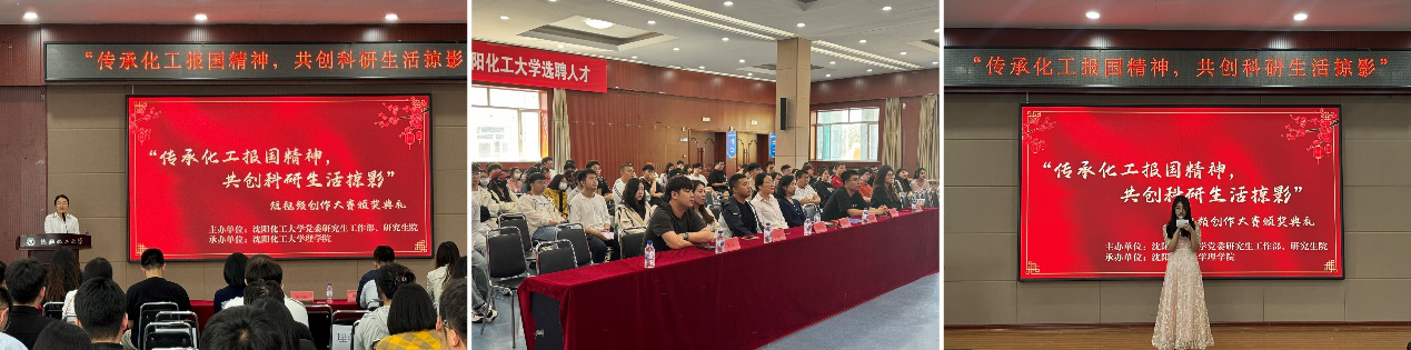 为深入学习贯彻党的二十大精神,增强研究生的创新思维和综合素养,丰富研究生的课余文化生活,培养以“化工报国”为内核的爱党爱国精神,集中展示沈阳化工大学研究生学子积极向上的精神风貌,5月24日,沈阳化工大学第二届研究生学术文化节系列活动之“传承化工报国精神 共创科研生活掠影”短视频创作大赛表彰大会于青年之家圆满落幕。活动由党委研究生工作部主办,理学院承办,党委研究生工作部部长杨海霞、理学院党委副书记高天骄及相关学院研究生辅导员出席活动。