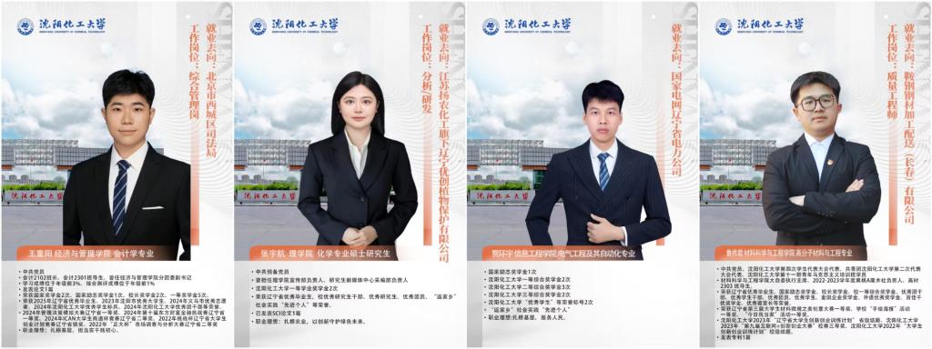 经济与管理学院会计专业王重阳讲述了自己从初入大学的迷茫到锚定职业目标与矢志努力的职业求索经历。从保研、部队文职等招聘考试失利到四大银行招聘考试全部进入面试,公务员国考、省考笔试、面试四个第一,最后选择签约北京市西城区司法局,他勉励同学们要坚定理想、勇于试错、锚定目标、充分准备。理学院化学专业硕士研究生张宇航讲述了自己和扬农化工结缘的经历,并针对企业岗位需求做有针对性准备进行了细致的经验分享。信息工程学院电气工程及其自动化专业贾环宇分享了自己考取国家电网辽宁省电力公司的准备过程。他特别提到,针对国网招录关于英语和计算机应用能力等方面的要求,要提早做好准备。同时,良好的寝室氛围也是成功的关键因素之一。同寝室三名参加国网考试的同学在备考过程中相互鼓励,抱团学习,最终均被国网录用。材料科学与工程学院鲁祚君围绕求职信息获取的多种渠道做了重点分享。通过校内宣讲、招聘会、24365等全国大学生智慧就业平台以及地方人社组织的专场招聘会,鲁祚君同学先后获得了包括华锦在内的多个央企的offer,并最终选择签约鞍钢集团旗下公司。