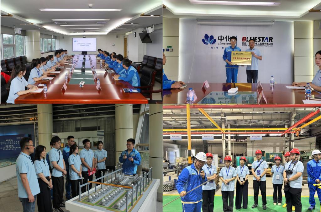 实践团到访蓝星(北京)化工机械有限公司(以下简称“北化机”),参观企业展厅和离子膜电解槽的生产车间,共同举行了“沈阳化工大学大学生社会实践基地”授牌仪式,并与企业主要领导、核心技术骨干及在企校友开展座谈。