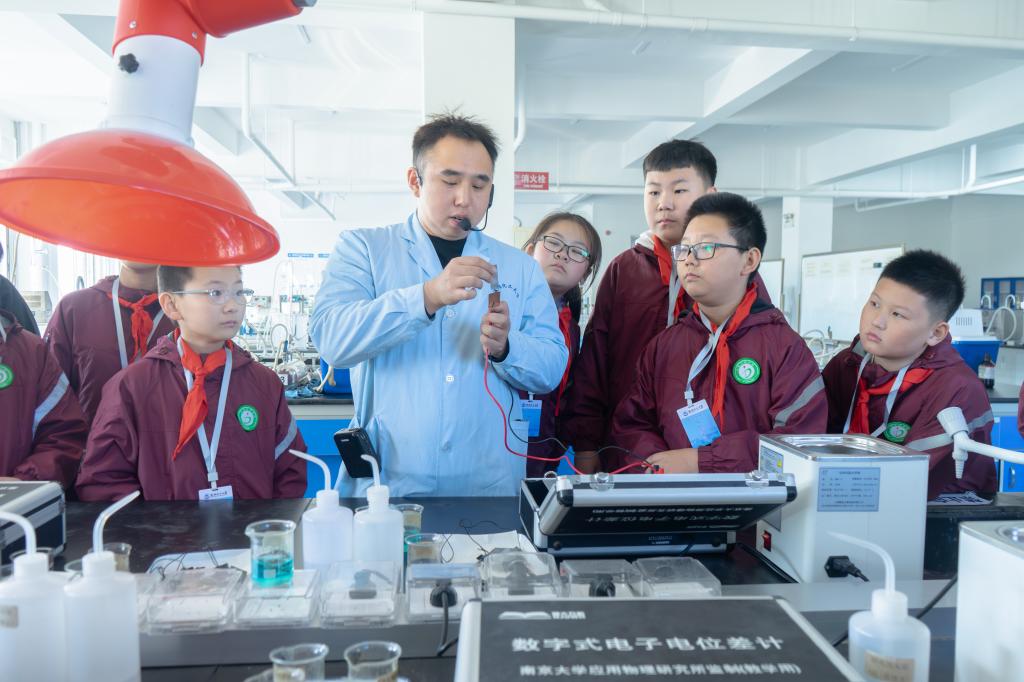 活动伊始,志愿者带领学生们有序地走进物理化学实验室。理学院孙旭老师向学生悉心讲解了化学仪器的用途与基础化学原理,将抽象知识转化为生动的现场演示,让孩子们近距离观察实验现象,点燃了学生主动探索知识的兴趣。