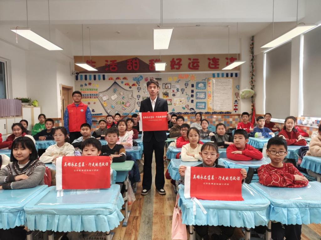 当天下午,学校雷锋班宣讲团在14所中小学校开展了“英雄永不谢幕·行走的思政课——雷锋精神进校园”主题宣讲活动。22个宣讲团队的师生紧扣雷锋精神时代内涵,面向4000余名中小学生宣讲雷锋故事和辽宁“时代楷模”金城龙同志先进事迹。大学生声情并茂地宣讲,课堂上大中小学生的积极互动,受到师生的欢迎,取得了良好的育人效果,真正做到了讲好英雄故事,激励学生弘扬优秀革命传统,赓续红色血脉,坚定理想信念。