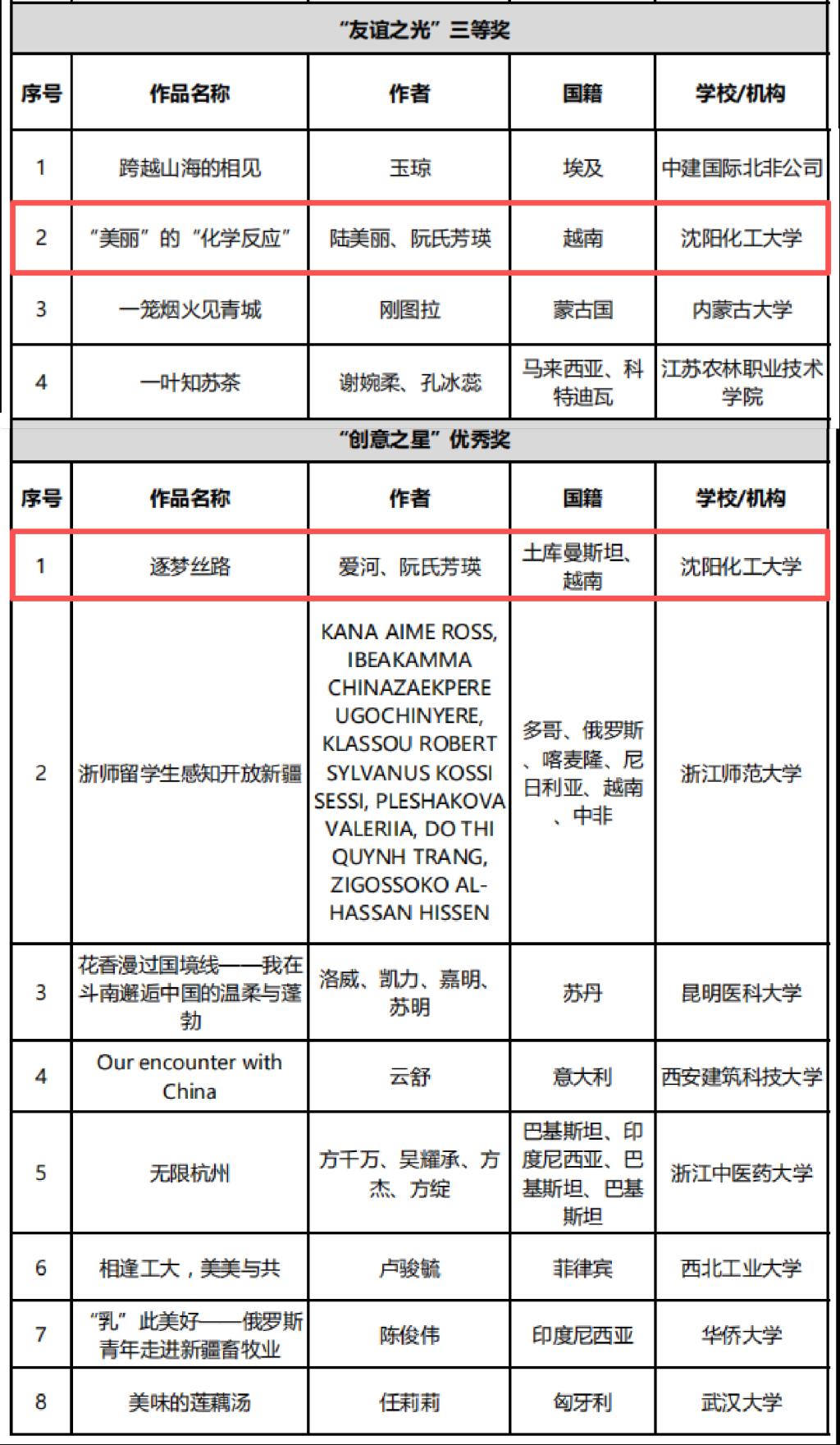 近日,由教育部国际合作与交流司指导、教育部留学服务中心主办的2025年“我与中国的美丽邂逅”征文暨短视频大赛结果正式揭晓。我校国际教育学院选送的两部视频作品斩获佳绩:越南籍留学生陆美丽的《“美丽”的“化学反应”》获“友谊之光”三等奖,土库曼斯坦籍留学生爱河的《逐梦丝路》获“创意之星”优秀奖,实现我校在该项全国赛事中获奖零的突破。