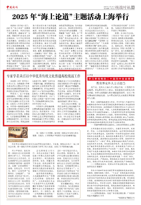 11月22日,高校统战工作研究理论研讨会暨以中华优秀传统文化推进高校统战工作理论研讨会在辽宁沈阳举行。