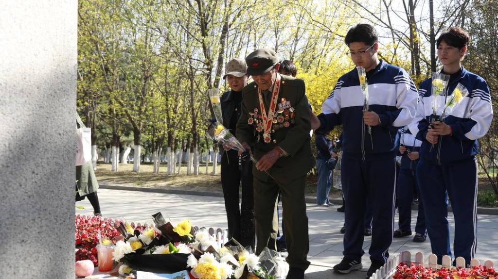 4月23日下午,三位抗美援朝老战士孙德山、侯志民、杨培善在烈士陵园为青年学子讲授了一堂沉浸式、有温度的特殊思政课,我校学子现场聆听学习。