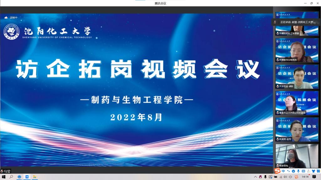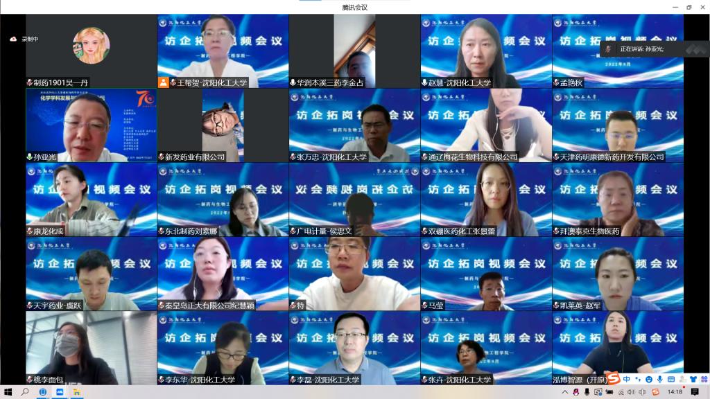 为贯彻落实教育部关于“访企拓岗促就业”专项行动决策部署,做好疫情常态化防控形势下毕业生就业工作,实现毕业生充分、高质量就业,制药与生物工程学院于8月31日召开“访企拓岗促就业”视频会议。本溪华润三药有限公司、天津药明康德新药开发有限公司、通辽梅花生物科技有限公司、鲁南制药集团股份有限公司、秦皇岛正大有限公司等19家企业参加了视频会议。沈阳化工大学副校长孙亚光、制药与生物工程学院领导班子、学科负责人、教研室主任、全体辅导员和2019级百余名学生代表参加了会议。会议由制药与生物工程学院党总支书记赵慧主持。
