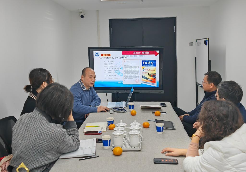 梁国利所长介绍了高等教育研究所和学报编辑部的基本情况、近年工作成就和未来发展规划。对《塑料科技》的办刊成就和发展态势予以充分肯定。梁国利主任特别指出:在沈阳化工大学成为《塑料科技》的主办单位后,《塑料科技》可充分发挥自身先进技术平台优势、充分利用学校师生的学术优势、充分挖掘学校科研的平台优势以及学校外部资源的整合优势,将学校作为高质量稿源的创生地和集结地,推动《塑料科技》向更大的目标努力、向更高的质量发展。