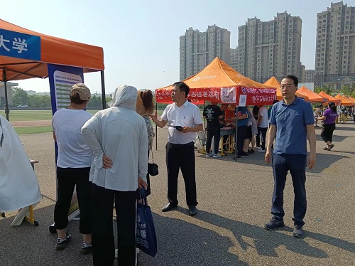 两位老师向家长和考生分发宣传资料同时,积极推介化大的历史沿革、师资力量、教学设施以及科研成果。此外,他们还介绍了学校的招生政策、录取标准和奖学金政策等,帮助考生更好地了解学校的录取要求和优惠政策。就学生们关心的就业前景、专业选择等问题进行了耐心细致的解答,让考生对沈阳化工大学有了更深入的了解。