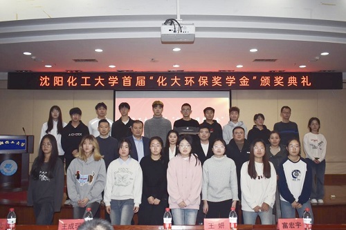 12月11日,沈阳化工大学首届“化大环保奖学金”颁奖典礼在校图书馆报告厅举行。沈阳化大生态环保产业服务有限公司总经理王妍、副总经理富宏宇;沈阳化工大学教育基金会秘书长王成琛;环境与安全工程学院党总支书记周燕北、副院长朱明昌、党总支副书记王莹以及全体辅导员老师和学生代表参加典礼。典礼由学院分团委书记吴化林主持。