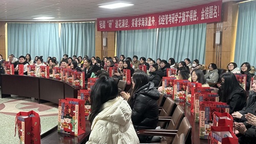 学院为考研学生精心准备的“金榜题名”礼品袋中装满了学院全体教师对考研学子的浓浓情谊和深深祝福,精心挑选搭配的文具礼盒、刻着考研学子姓名和“一战成硕”、“一研为定”等祝福语的可口可乐、带着“一举夺葵”、“锦鲤附体”等祝福语的幸运钥匙链、“贴近我,温暖你”的艾香暖贴、补充能量,缓解疲劳的士力架,都将承载着学院全体教师的期盼与祝福助力所有考研学子圆梦未来。学院领导为考研学生发放“金榜题名”大礼包,学生们脸上露出喜气洋洋的笑容,也缓解了连日来备考高度紧张的情绪。