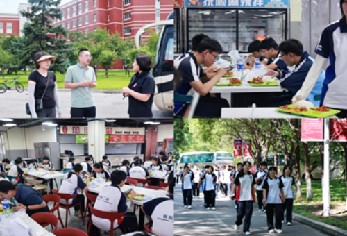 研学团抵达后,首先在国旗广场合影,定格跨学段交流的重要时刻。随后前往生活城第三食堂体验大学餐饮文化,沉浸式感受大学生活场景。