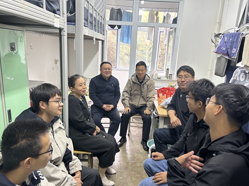 随后,学院教师走进学生宿舍,慰问留校新生,细致了解新生适应情况,叮嘱同学们重视学业、愉快生活。远离家乡的同学们表示,将尽快融入校园生活,以勤奋学习、优异成绩回报学校与国家的培养。