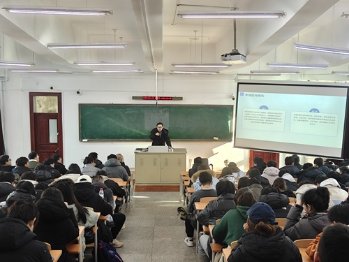 辅导员杜明日介绍了马邦集校友的学习和工作经历。马邦集校友结合自身工作经历,围绕国家电网入职考试的报考要点、备考方法展开了详细讲解,并针对电气专业的课程复习、岗位能力要求等内容进行了细致分析。交流环节中,同学们积极提问,马邦集校友耐心解答并给出实用建议,现场交流氛围浓厚。