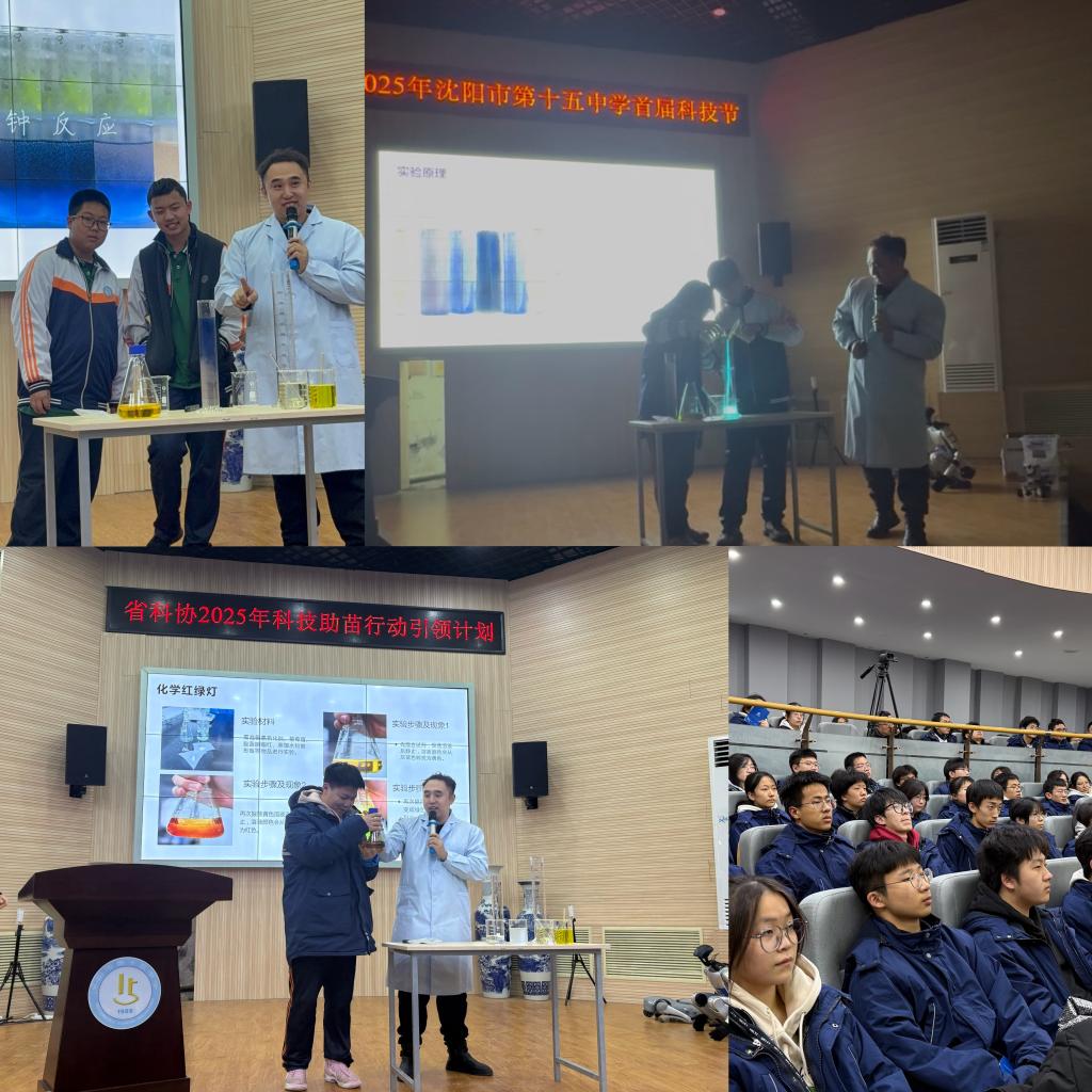 近日,我校人文与艺术学院联合理学院师生组团参加沈阳市第十五中学科技节,把“大学课堂”搬进高中校园。此次活动作为“化工报国——培养小小化学科学家”的科普活动之一,社会工作专业教师张帆与理学院化学专业教师孙旭运用各学科的专业知识,通过链接高校优质教育资源,将高校优质资源下沉到中学教育一线,为第十五中学同学们设计出将化学知识与实践操作深度融合的科普活动。人文与艺术学院分团委书记胡明辉、理学院分团委书记张卓夫等师生参加活动。