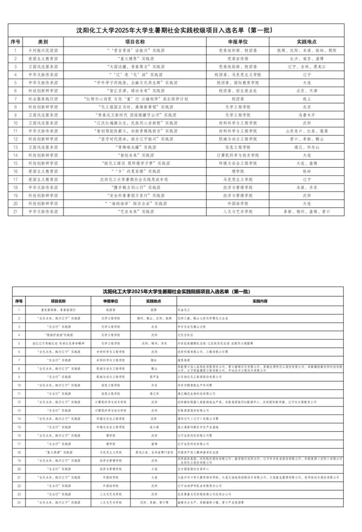 根据《关于开展沈阳化工大学2025年大学生暑期社会实践活动的(预)通知》工作安排,校团委于2025年7月2日在团委105室举行沈阳化工大学2025年大学生暑期社会实践立项答辩会。经社会实践立项评审组评议,现对通过立项评审的第一批校级团队、院级团队进行公示,公示期三天。自本公示发布后,如对评选结果有异议,请在公示期内实名向校团委志工权益部反映情况。